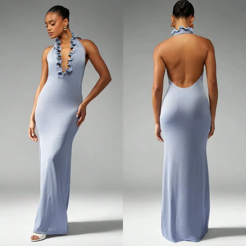 Vestido largo Missguided color azul con detalle en relieve