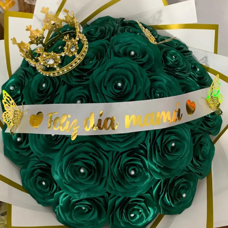 30 rosas+ cinta personalizada+ 1 corona+ 3 mariposas+ perlas
