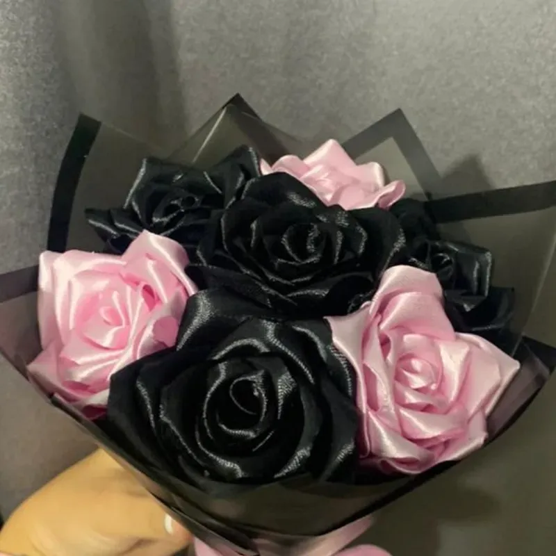 4 rosas negras+ 3 rosas rosadas
