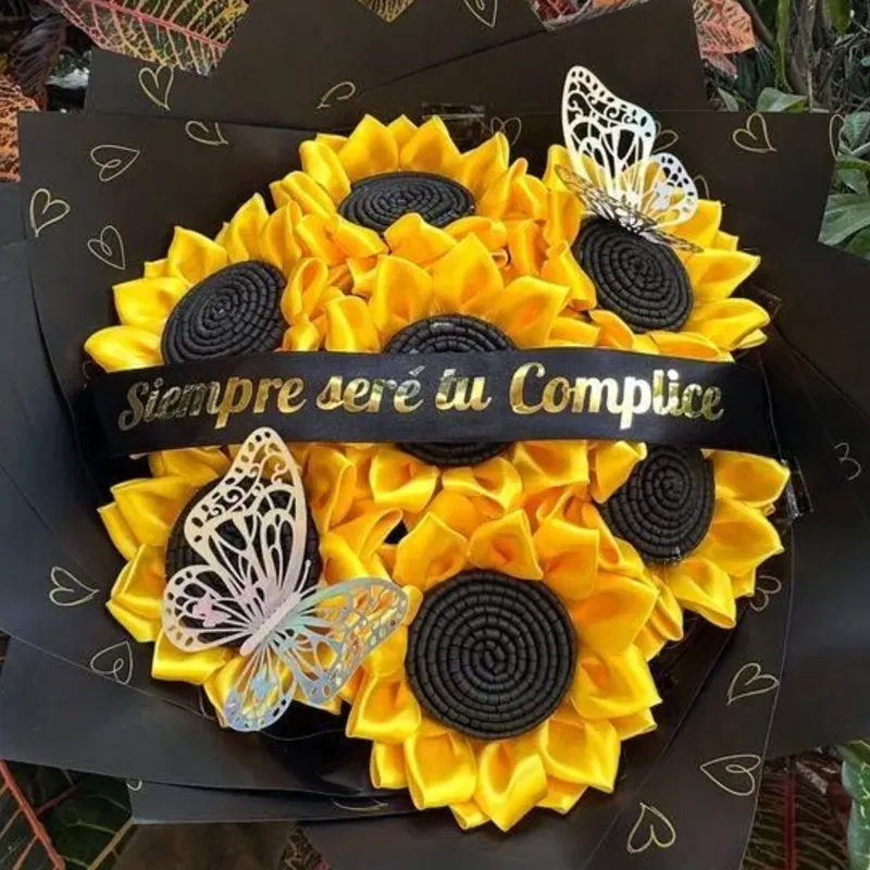 7 girasoles+ 2 mariposas+ cinta personalizada