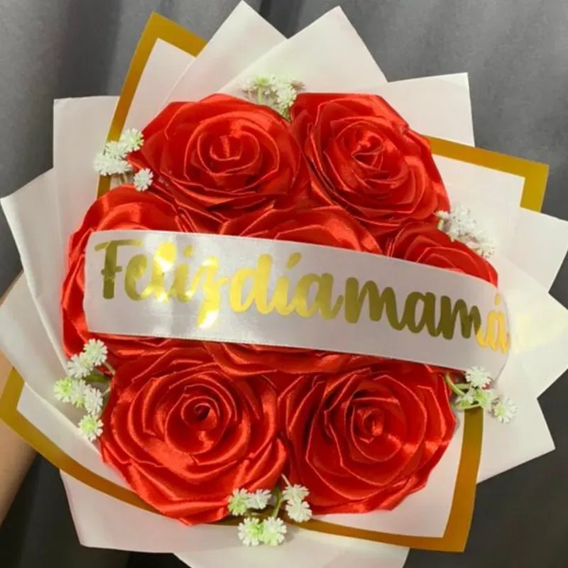 7 rosas+ cinta personalizada+ 6 floresitas artificiales