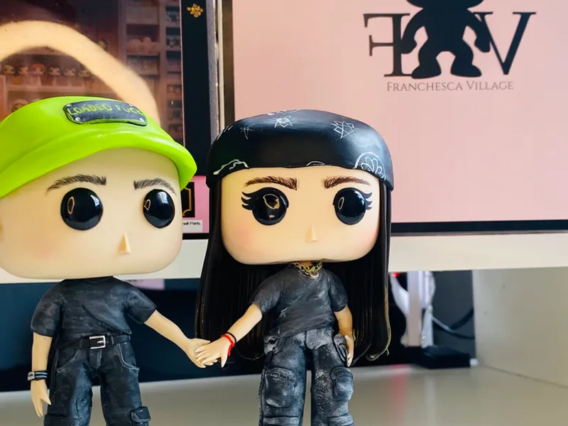 Uno vistiendo su uniforme de trabajo y el otro su ropa favorita🩷Esta pareja quiso sorprenderse con esta figura donde sus manos están unidas por el hilo rojo del destino,reflejando la complicidad que los conecta ♾️💫.