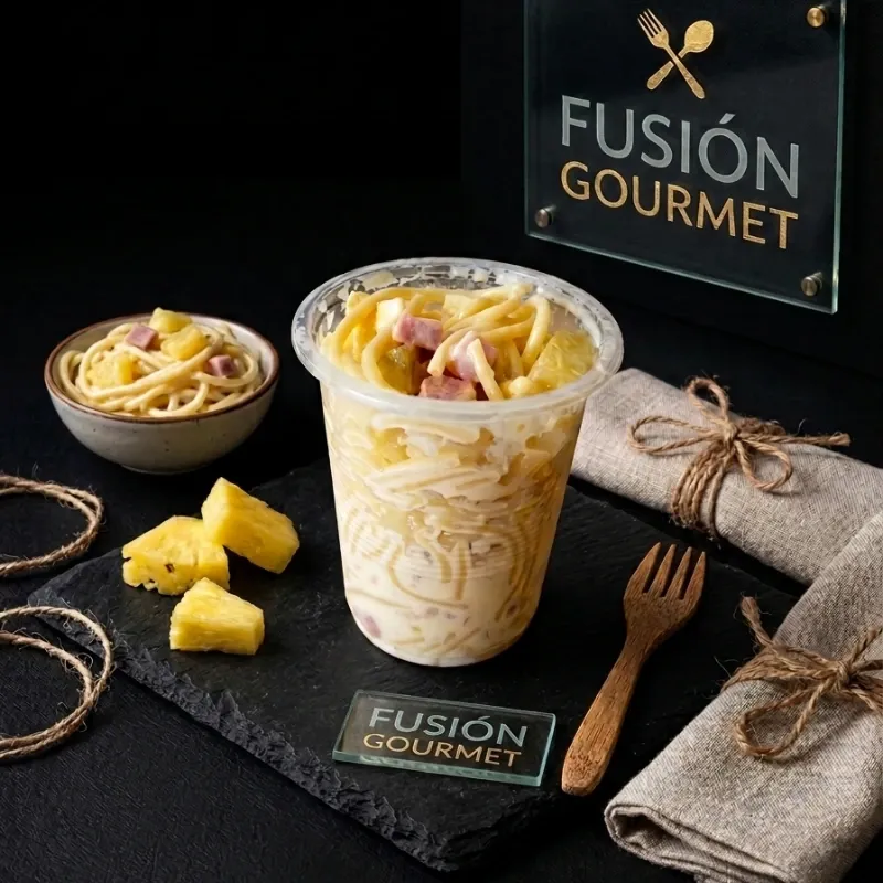 En un vaso de 8 oz contiene un sabor muy agradable dulce por el dulce de piña combinado con el salado del queso y jamón y ese toque especial de una mayonesa bien rica donde resalta el Sabor a ajo