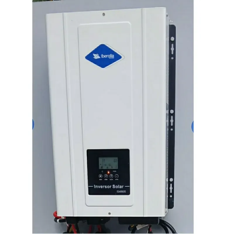 El inversor híbrido Iberolia 6 kW entrega 6000W en onda sinusoidal pura, trabaja con banco de baterías de 48VDC, integra un MPPT de alta eficiencia (120A) y salida configurable en 110V y 220V AC, lo que lo hace versátil para distintos entornos eléctricos; cuenta con pantalla LCD, comunicación CAN/RS485/USB, cargador AC integrado y protecciones avanzadas, siendo ideal para hogares y negocios que buscan energía limpia, segura y adaptable.