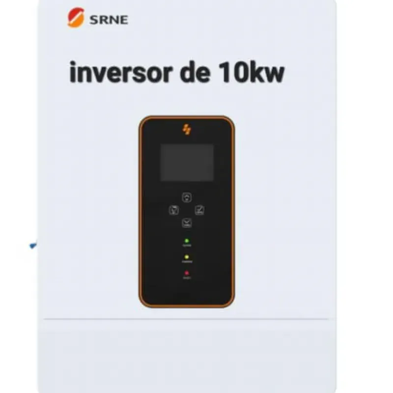 El inversor híbrido SRNE 10 kW entrega 10,000W en onda sinusoidal pura, trabaja con banco de baterías de 48VDC, integra un MPPT de alta eficiencia (200A) y salida configurable en 110V/220V AC, con pantalla LCD, comunicación CAN/RS485/USB, cargador AC integrado y protecciones avanzadas, siendo ideal para hogares grandes, negocios e instalaciones solares industriales que requieren energía limpia, segura y escalable.