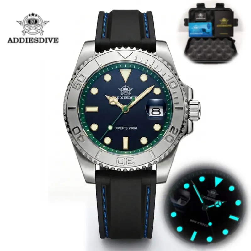 Reloj ADDIESDIVE con bisel giratorio para hombre, reloj de cuarzo de 41mm, costura inoxidable BGW9, correa de goma luminosa, reloj de buceo de 200m para hombre, nuevo