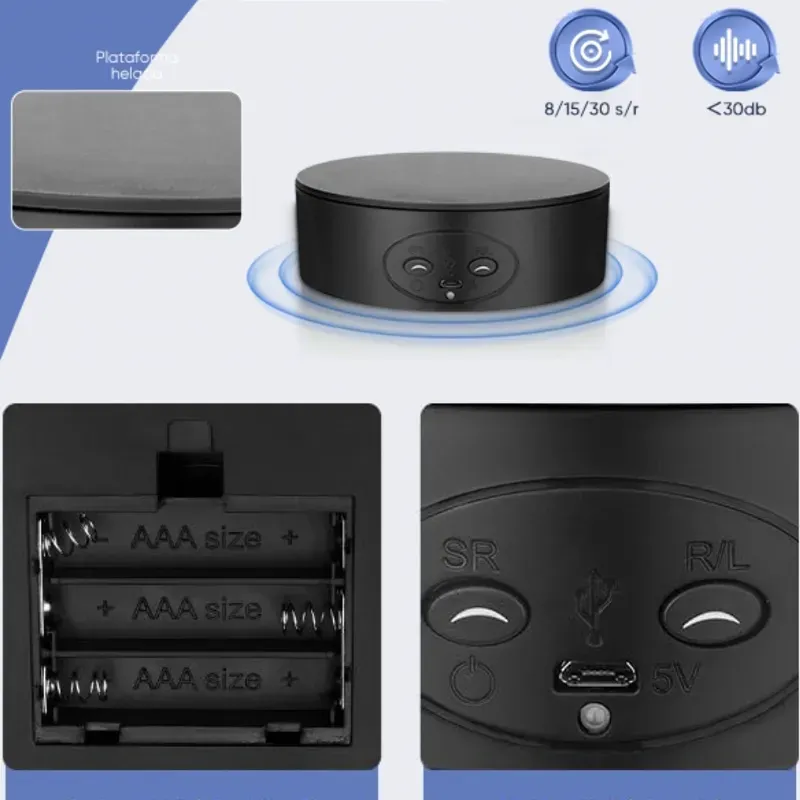 Plataforma giratoria eléctrica de 5.1 pulgadas/13 cm, apta para fotografía panorámica de 360°, capacidad de carga de 8.8 lbs/4 kg, base giratoria ajustable de 360°, aplicable para fotografía, joyería, modelos 3D, relojes, alimentada por batería/USB, plataforma giratoria eléctrica