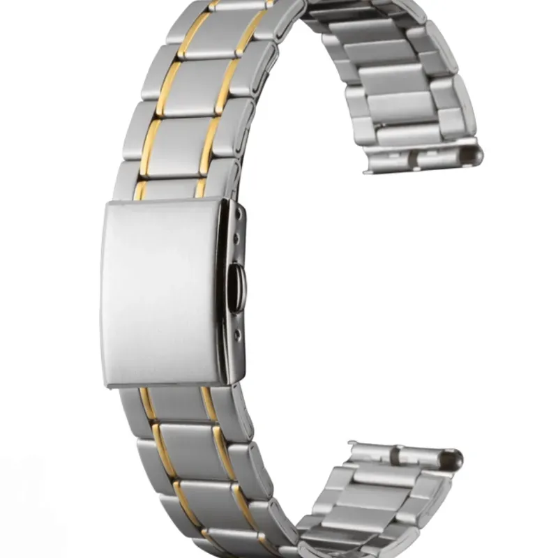 Correa de reloj de chapa metálica dos tonos ligera de 24 mm, construcción de eslabón hueco y longitud fija, cierre plegable de perfil delgado para hombres