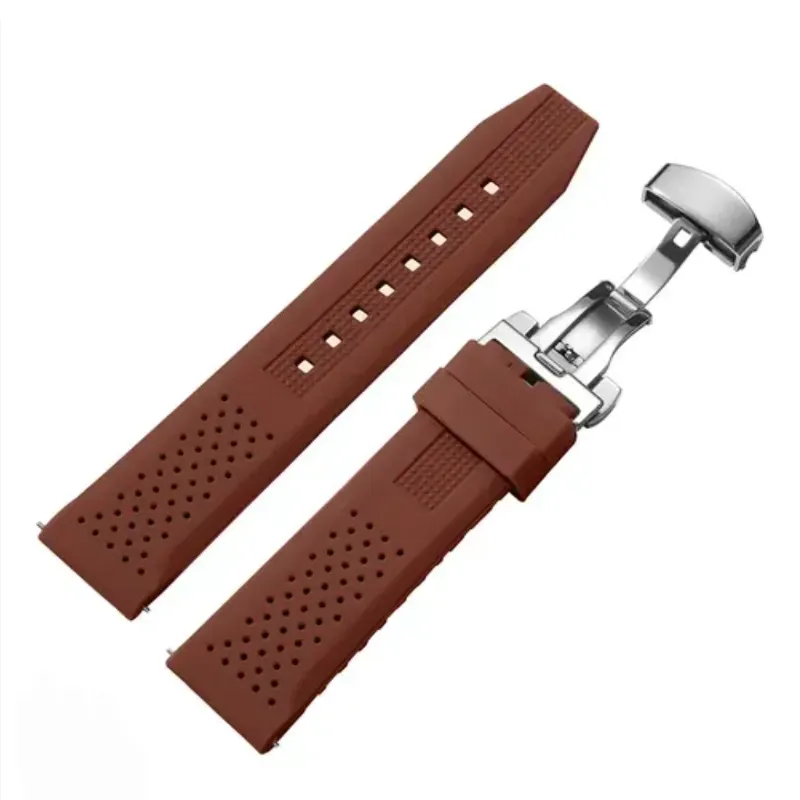 Correa de Reloj Deportiva para Hombres en Silicona Negra, Hebilla de Mariposa Doble Presión 22mm, Ideal para Uso Diario y Regalos