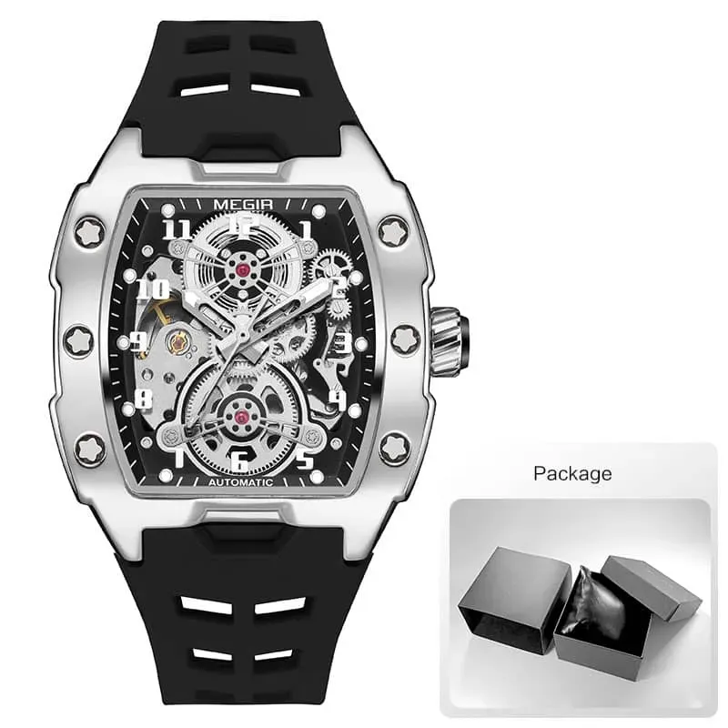MEGIR-Reloj de pulsera para hombre, accesorio masculino de pulsera resistente al agua con esfera hueca, correa de silicona, color negro, luminoso, automático, a la moda, 8602 Detalles • Producto químico de alta preocupaciónNinguno • Tipo de pantallaAguja • Tipo de bandaBanda deportiva • Tipo de pantallaMarcadores de Números Arábigos • Forma de la cajaCapota • Grosor de la caja14mm • Origen del movimientoChina continental • Ancho de banda20 a 24 mm • Tipo de material de la correaSilicona • Material de cajas y estuchesPapel • Número de modeloMN8602GWE-1N7 • Tipo de material de ventana de dialHardlex • CaracterísticaEsqueleto,Luminoso • Diámetro del dial40 a 44 mm • Profundidad de resistencia al agua3 bar • Tipo de cierreHebilla • Longitud de la correa21cm • Material de la cajaAleación • EstiloA la moda y casual • MovimientoViento de mano mecánico,Autoviento automático • Nombre de la marcaMEGIR • OrigenCN(Origen)