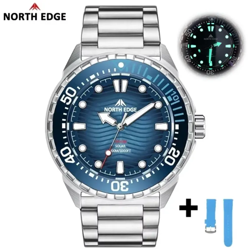 NORTH EDGE nuevo reloj de buceo TRITON con energía Solar para hombre relojes de pulsera de cuarzo de lujo caja de acero inoxidable 316L resistente al agua 300M