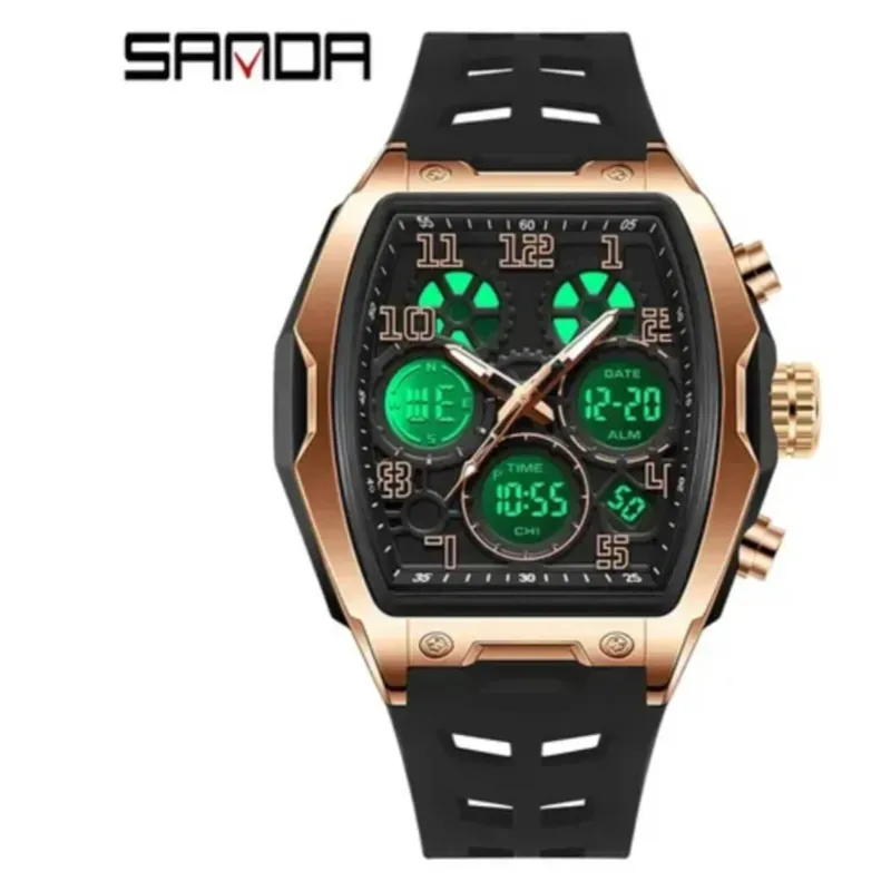 Relojes de pulsera con pantalla Dual para hombre, reloj de pulsera de silicona de lujo de marca superior, reloj de pulsera Digital deportivo para hombre