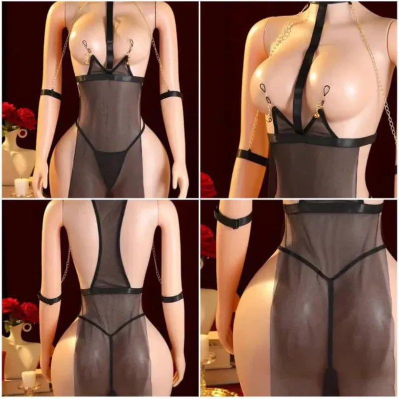Transpirable y sexy para mujer, con un diseño único y transparente. Ideal para mujeres que buscan un atuendo sexy y atractivo. Incluye bragas, conjunto de ropa de cama con un diseño de cadena y un estilo de tentación sexy.