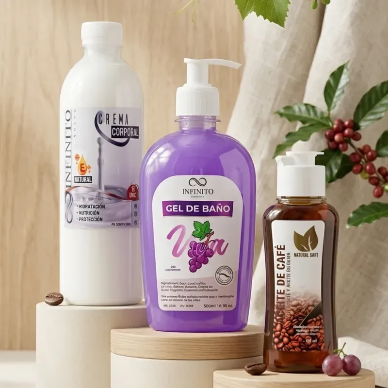 🍇 Gel de baño (uva o fresa): Limpia suavemente la piel mientras la envuelve en un aroma delicioso y relajante, dejando una sensación fresca y revitalizada.