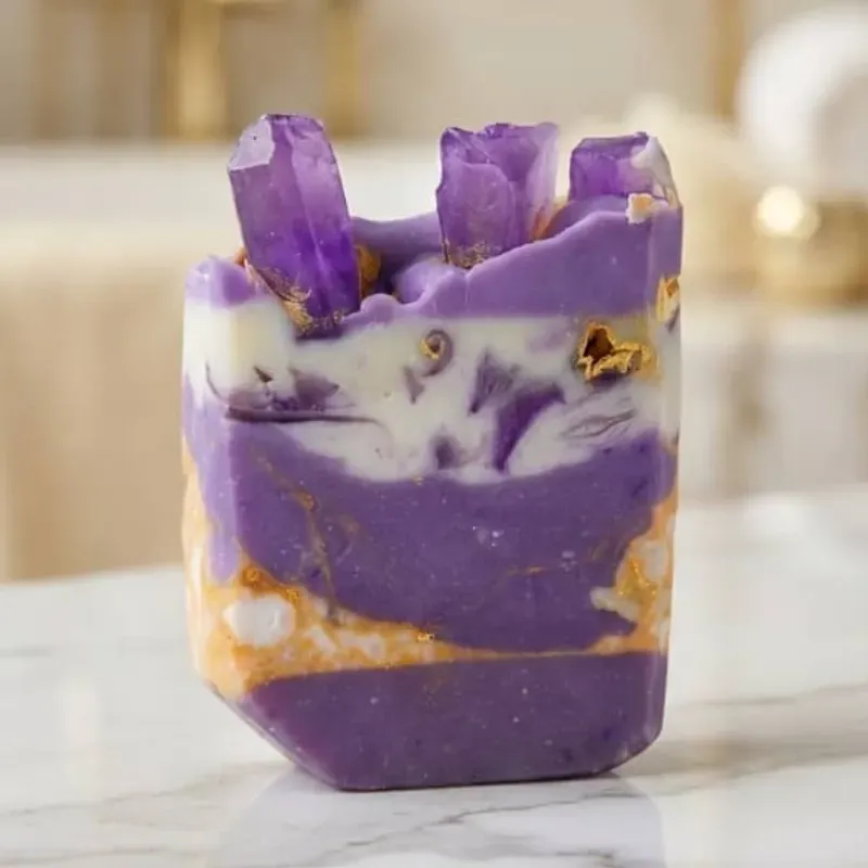 ¿Quién dijo que la magia no existe? Transforma tu rutina diaria en un ritual de lujo con nuestro nuevo jabón artesanal inspirado en las geodas de amatista. Este no es solo un jabón, es una joya aromática. Su fragancia es un jardín secreto: la calma de la lavanda, la elegancia de las violetas y la dulzura envolvente de la gardenia. 💧 En tu piel: Sentirás una caricia ultra cremosa gracias a nuestra fórmula especial con manteca de cacao, karité y coco, diseñada para limpiar sin resecar, dejando tu piel suave y nutrida. Date el capricho que mereces o regala magia. ✨ 110g 📌Solo por preventa
