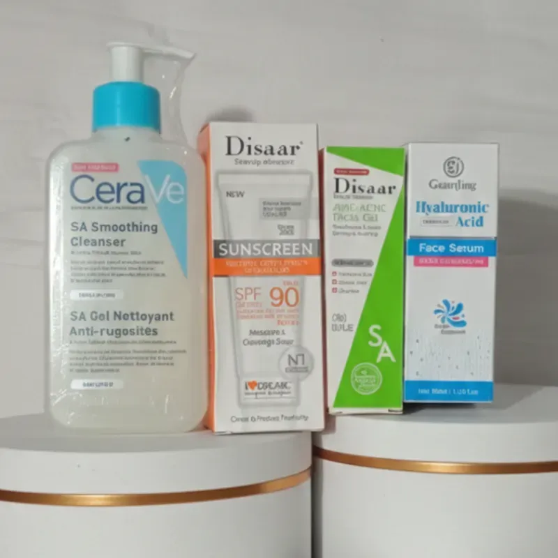 Noche: Limpiador + Serum + Gel Antiacné (solo en zonas con acné).