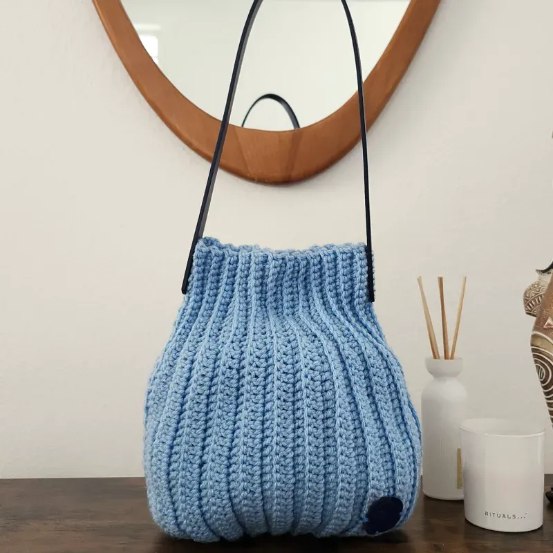 Bolso de acrílico con asa de cuero sintético, cierre imantado y forro interno