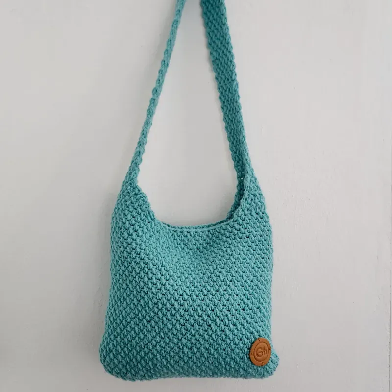 Bolso de la colección Aurora: color mar de Aruba, 1 asa, hecho de acrílico, con forro interno y cierre imantado.