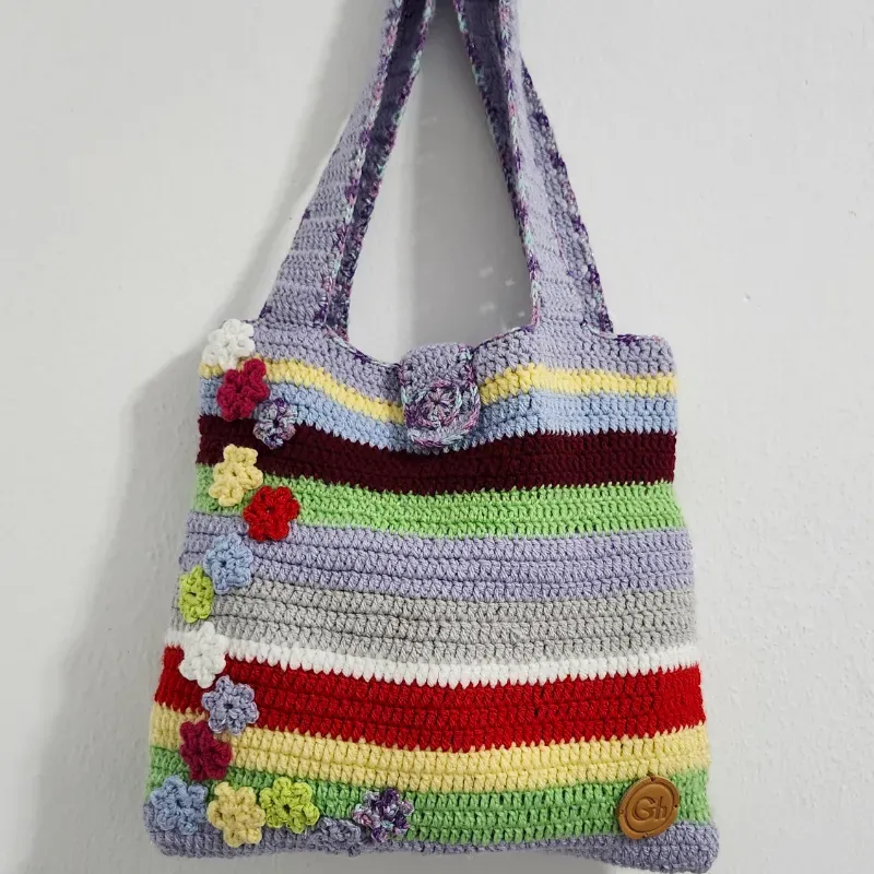 Bolso colorido de acrílico con 2 asas, forro interno y cierre imantado
