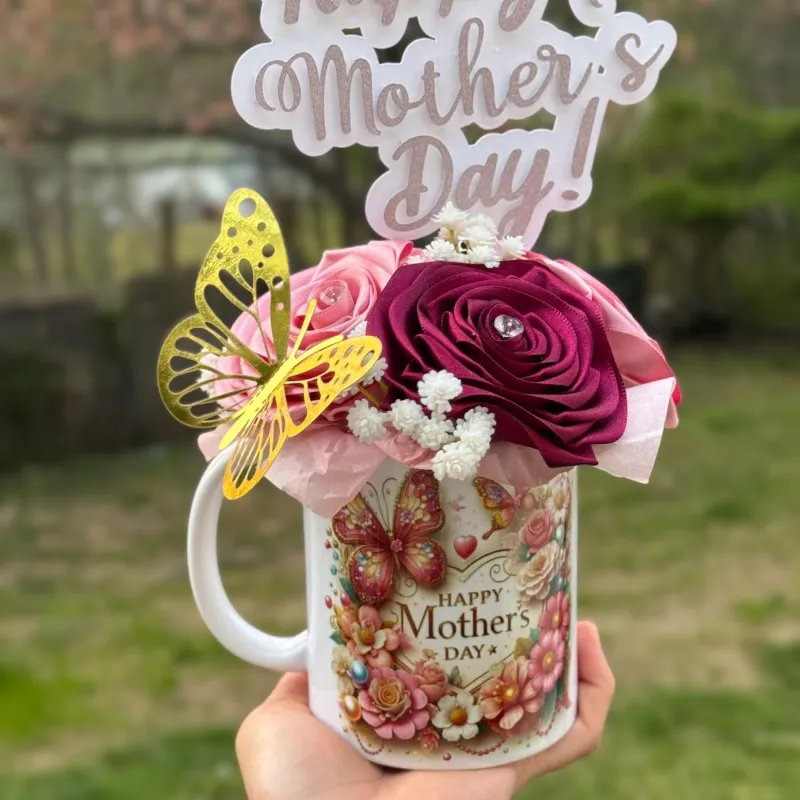Taza personalizada q contiene rosas y cartel dedicado para mamá .