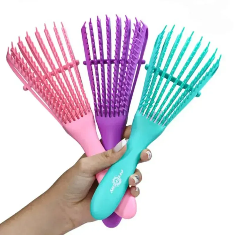 Cepillo anti friz. Para cabello ondulado, rizado y en espiral.Reduce a la mitad el tiempo para desenredar y peinar el cabello.Es flexible en el sentido de que se mueve con el cabello, lo que hace que el desenredado sea menos doloroso
