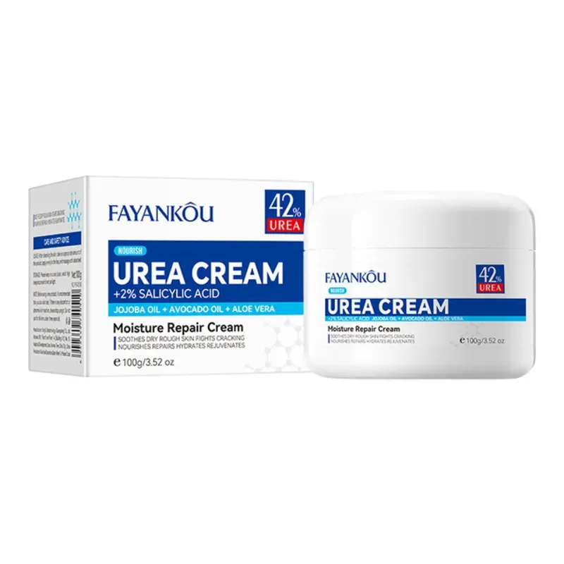 Crema de urea +2 % de ácido salicílico Aceite de jojoba + aceite de aguacate + aloe vera Crema hidratante reparadora Calma la piel seca y áspera, combate el agrietamiento, nutre, repara, hidrata y rejuvenece