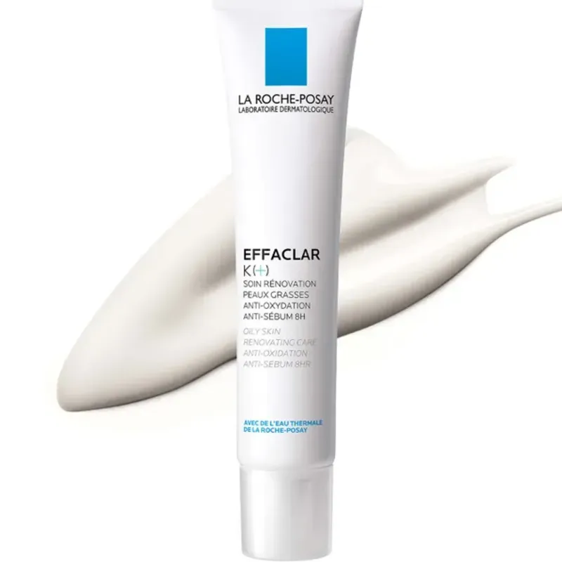 EFFACLAR K (+) es el 1º cuidado renovador de La Roche-Posay para piel grasa que previene la oxidación de los puntos negros recurrentes con propiedades anti-oxidación y anti-sebo durante 8 horas.