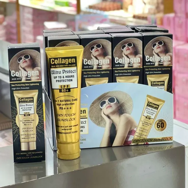 3 en 1 Protector solar Colageno Acido hialurónico Tacto seco Aprueba de agua Aclarador de piel
