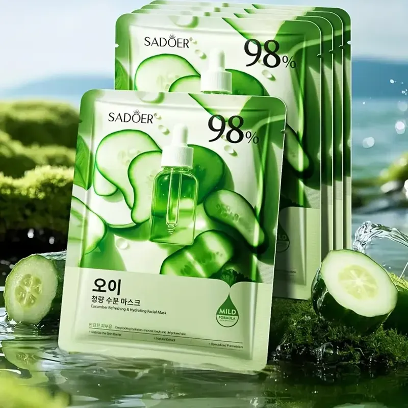 La mascarilla es suave, transpirable, agradable para la piel y se adhiere firmemente. Está repleta de abundantes ingredientes como el pepino. Proporciona a la piel hidratación como el rocío, brinda un cuidado suave e hidratante, alivia el estado de la piel seca y deshidratada, rejuvenece y revitaliza la piel. Disfruta de un momento de relajación y deja la piel completamente hidratada y con un brillo atractivo.