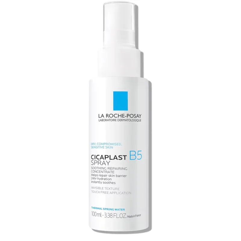 La Roche-Posay Cicaplast B5 Spray con vitamina B5 pantenol y madecassoside, niebla facial hidratante para reparación de barreras cutáneas, spray calmante para rostro y cuerpo