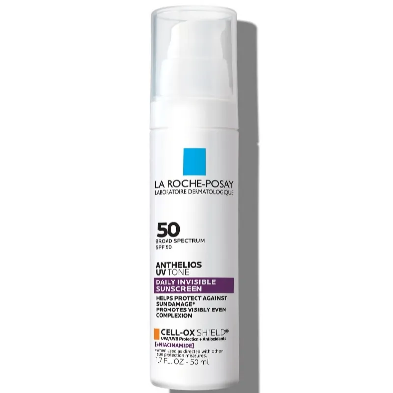 Protección solar SPF 50 ligera e invisible que ayuda a suavizar la piel y mejorar la apariencia de decoloración de la piel