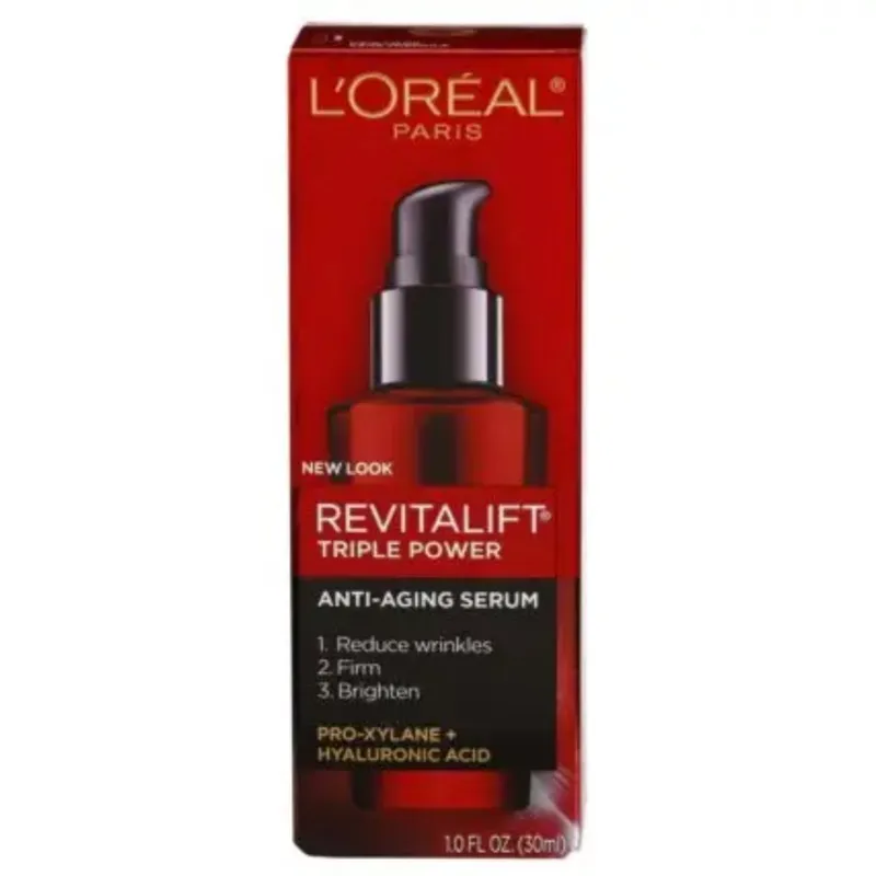 L'Oreal Paris Revitalift Triple Power - Suero concentrado antienvejecimiento para la cara, ácido hialurónico y Pro-Xylane, reduce las arrugas, 1 oz