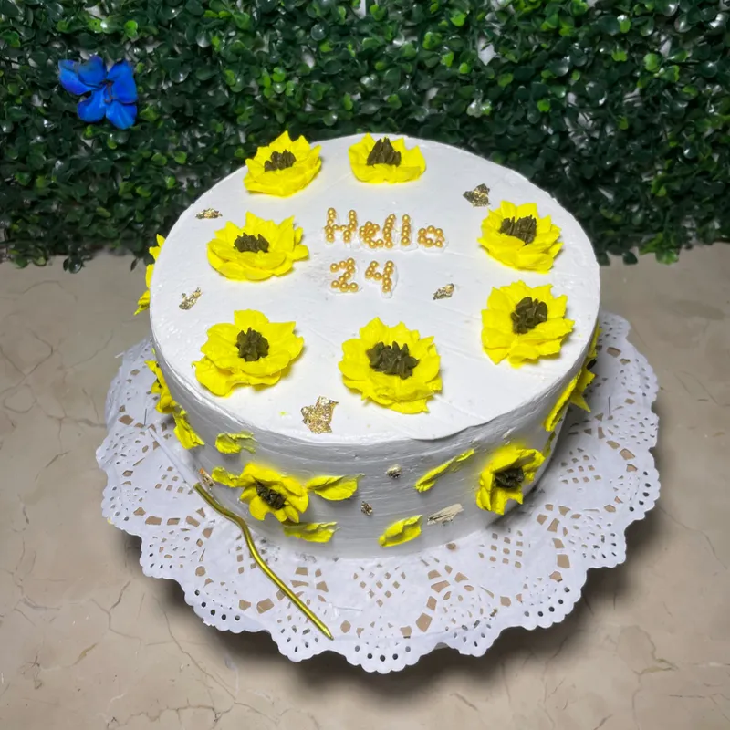 Panetela 20 cm masa d vainilla o chocolate según el gusto , rellena y decorada con nata la cual puede ser de chocolate o de vainilla , rinde para 15 porciones