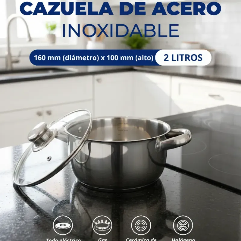 Cazuela de acero inoxidable de 2 litros