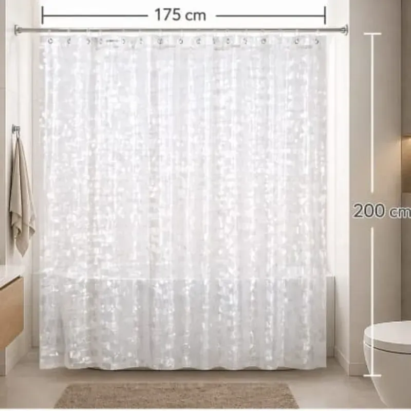 Gracias a sus ojales metálicos reforzados y argollas incluidas, la instalación es rápida y segura, evitando desgarros con el uso continuo. Su tamaño de 175 x 200 cm la hace ideal para duchas o bañeras estándar, especialmente en baños modernos.