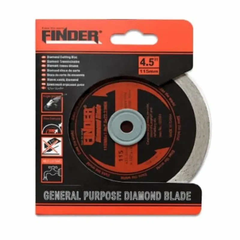 Este disco diamantado FINDER de 4.5” está diseñado para trabajos de corte precisos y limpios, especialmente en materiales duros. Su borde continuo permite un acabado más fino y reduce el astillado del material.
