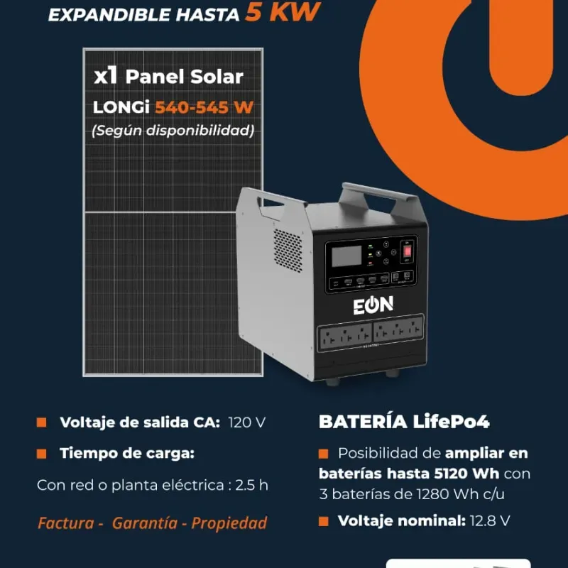 - Posibilidad de ampliar en baterías hasta 5120 Wh con 3 baterías de 1280 Wh c/u