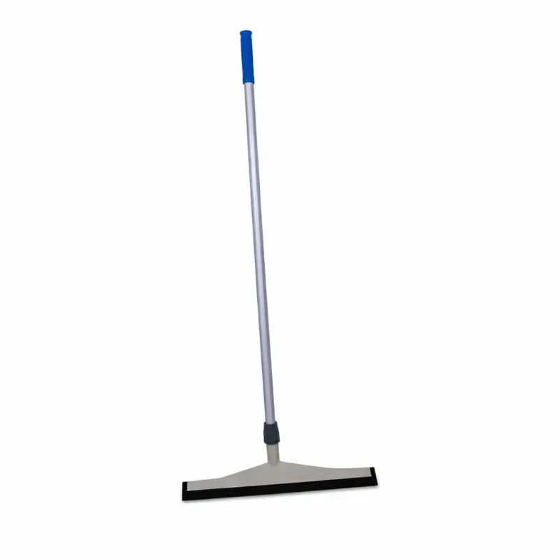 Mango: Tubo metálico (probablemente aluminio o acero ligero) Empuñadura: Plástico con recubrimiento antideslizante (color azul) Cabezal: Plástico rígido Goma: Hule negro flexible de alta resistencia
