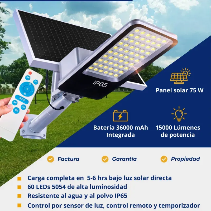 - Control por sensor de luz, control remoto y temporizador