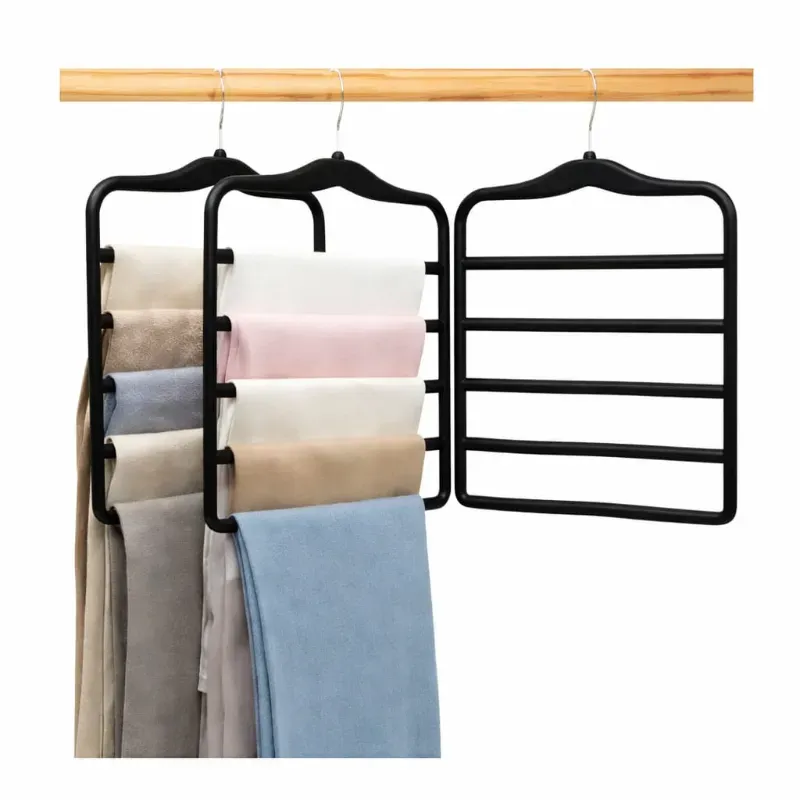 Esta percha organizadora es ideal para ahorrar espacio en el clóset, permitiendo colgar varias prendas en un solo gancho. Su diseño de múltiples niveles facilita mantener la ropa ordenada, visible y sin arrugas.