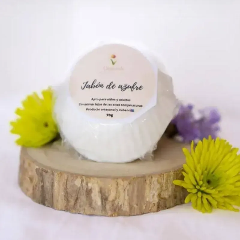 Jab贸n de azufre *Jab贸n de azufre (5%) * El jab贸n natural artesanal que contiene azufre al 5% Beneficios del Azufre:鉁笍 鉁咃笍1.Propiedades Antibacterianas y Antiinflamatorias: El azufre es conocido por su capacidad para combatir bacterias y reducir la inflamaci贸n, lo que lo hace 煤til en el tratamiento de afecciones cut谩neas como el acn茅, la ros谩cea y otros brotes inflamatorios. 鉁咃笍2.Regulaci贸n de la producci贸n de sebo: Ayuda a controlar la producci贸n de grasa en la piel, lo que es especialmente beneficioso para aquellos con piel grasa o propensa al acn茅. 鉁咃笍3.Exfoliaci贸n: Facilita la eliminaci贸n de c茅lulas muertas de la piel, promoviendo una apariencia m谩s suave y radiante 鉁咃笍.4.Tratamiento de enfermedades de la piel: Puede ser eficaz en el tratamiento de enfermedades como la dermatitis seborreica, la psoriasis y la ti帽a 鉁咃笍.5.Propiedades antif煤ngicas: Ayuda a combatir infecciones f煤ngicas en la piel, contribuyendo a una mejor salud cut谩nea .Beneficios de la Glicerina Vegetal: 鉁咃笍1.Hidrataci贸n: La glicerina es un humectante natural que atrae la humedad a la piel, ayudando a mantenerla hidratada y suave. 鉁咃笍2.Compatibilidad con todo tipo de piel: A medida que es suave, es adecuada incluso para pieles sensibles y secas, lo que asegura que no cause irritaci贸n. 鉁咃笍3.Promueve la cicatrizaci贸n: Puede ayudar a mejorar el proceso de cicatrizaci贸n de la piel, gracias a sus propiedades hidratantes. 鉁咃笍4.Suavidad y elasticidad: Ayuda a mejorar la textura de la piel, haci茅ndola m谩s suave y el谩stica.5.Efecto calmante: Reduce el enrojecimiento y la irritaci贸n, ofreciendo un efecto calmante.Utilidades Generales: 鈥so diario: Ideal para la higiene diaria, especialmente para personas con problemas cut谩neos. 鈥fecciones espec铆ficas: 脷til como parte de un r茅gimen de tratamiento para el acn茅, dermatitis seborreica, psoriasis, etc.鈥uidado de piel seca: La combinaci贸n de azufre para limpiar e hidratar la piel gracias a la glicerina lo hace adecuado para cualquier tipo de piel .鈥so en ritmos de vida activos: Su capacidad para combatir olores y bacterias lo hace una buena opci贸n para quienes realizan actividades f铆sicas o viven en climas c谩lidos .Consideraciones Finales:鈥atural y sin qu铆micos: Al ser un producto artesanal y natural, es menos probable que contenga qu铆micos da帽inos que puedan irritar la piel.鈥ostenible: El uso de ingredientes vegetales y naturales puede ser una opci贸n m谩s sostenible en comparaci贸n con jabones comerciales que contienen productos sint茅ticos.Recuerda que, aunque el jab贸n de azufre puede ofrecer muchos beneficios, es recomendable realizar una prueba en una peque帽a 谩rea de la piel para asegurarse de que no cause reacciones adversas, especialmente en personas con piel sensible o con alergias. Siempre es aconsejable consultar a un dermat贸logo en caso de preocupaciones espec铆ficas de la piel. 馃憖Nuestros jabones son a base de glicerina y son ricos en aceite ozonizador, aceite de moringa, prote铆na de seda y prote铆na de leche. 70g.