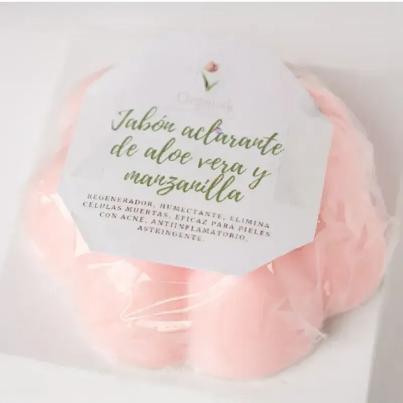 *Jab贸n aclarante* 馃専馃 Con: *Manzanilla* 馃尲 *Aloevera* 馃 *Rosa Mosqueta* 馃尭 馃尭 鉁咃笍1. Rosa Mosqueta: 鈥egeneraci贸n celular: Riqueza en 谩cidos grasos esenciales que ayudan a regenerar y cicatrizar la piel. 鈥ntioxidante: Contiene vitamina C y antioxidantes que protegen la piel del da帽o ambiental .鈥idrataci贸n: Proporciona hidrataci贸n profunda, mejorando la textura y elasticidad de la piel .鈥educci贸n de cicatrices: Eficaz en la atenuaci贸n de cicatrices y marcas de acn茅. 鈥ropiedades anti envejecimiento: Combate arrugas y l铆neas finas. 鉁咃笍2. Aloe Vera: 鈥idratante: Potente humectante que mantiene la piel suave y flexible. 鈥ntiinflamatorio: Reduce irritaciones y enrojecimientos, ideal para pieles sensibles. 鈥icatrizante: Favorece la curaci贸n de heridas y quemaduras .鈥fecto refrescante: Alivia la piel da帽ada por el sol. 鈥ntibacteriano: Ayuda a combatir infecciones cut谩neas. 鉁咃笍3. Manzanilla: 鈥almante: Propiedades antiinflamatorias que alivian la piel irritada. 鈥ntis茅ptica: Previene infecciones y ayuda en el tratamiento de acn茅. 鈥lanqueadora natural: Puede ayudar a reducir manchas oscuras y unificar el tono de la piel. 鈥elajante: Su aroma tiene un efecto tranquilizante que puede contribuir al bienestar general. 鉁咃笍4. Glicerina Vegetal: 鈥idratante: Atrae la humedad a la piel, manteni茅ndola hidratada y suave. 鈥uavidad: Mejora la textura, haci茅ndola m谩s sedosa .鈥romueve la cicatrizaci贸n: Favorece la curaci贸n de la piel .鈥ompatible con todo tipo de piel: Apta para pieles sensibles o secas. 鈥fecto calmante: Reduce el enrojecimiento e irritaci贸n.Utilidades Generales: 鈥so diario: Apto para la higiene diaria y el cuidado de la piel. 鈥uidado de piel sensible: Ideal para quienes tienen piel propensa a irritaciones o alergias .鈥tenuaci贸n de cicatrices y manchas: Combina propiedades para ayudar a mejorar la apariencia de la piel da帽ada. 鈥elajante: Ideal para momentos de autocuidado, gracias a la fragancia de la manzanilla. 鈥ostenible y natural: Sin qu铆micos da帽inos, respetuoso con el medio ambiente. 鉁笍Resumen:El jab贸n natural artesanal que combina rosa mosqueta, aloe vera, manzanilla y glicerina vegetal ofrece m煤ltiples beneficios para la piel, incluyendo hidrataci贸n, regeneraci贸n celular, calma de irritaciones y propiedades antibacterianas. La rosa mosqueta promueve la cicatrizaci贸n y el anti envejecimiento, el aloe vera se destaca por su capacidad hidratante y cicatrizante, la manzanilla calma y desinfecta, y la glicerina vegetal atrae humedad, mejorando la textura de la piel. Este jab贸n es adecuado para el uso diario, especialmente para pieles sensibles, y es una opci贸n natural y sostenible para el cuidado personal. 馃憖Nuestros jabones son a base de glicerina y son ricos en aceite ozonizador, aceite de moringa, prote铆na de seda y prote铆na de leche. *Formato: 160g*