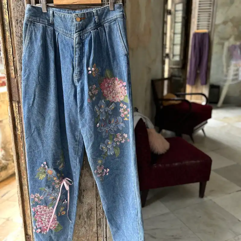 Jeans con flores de cintura alta