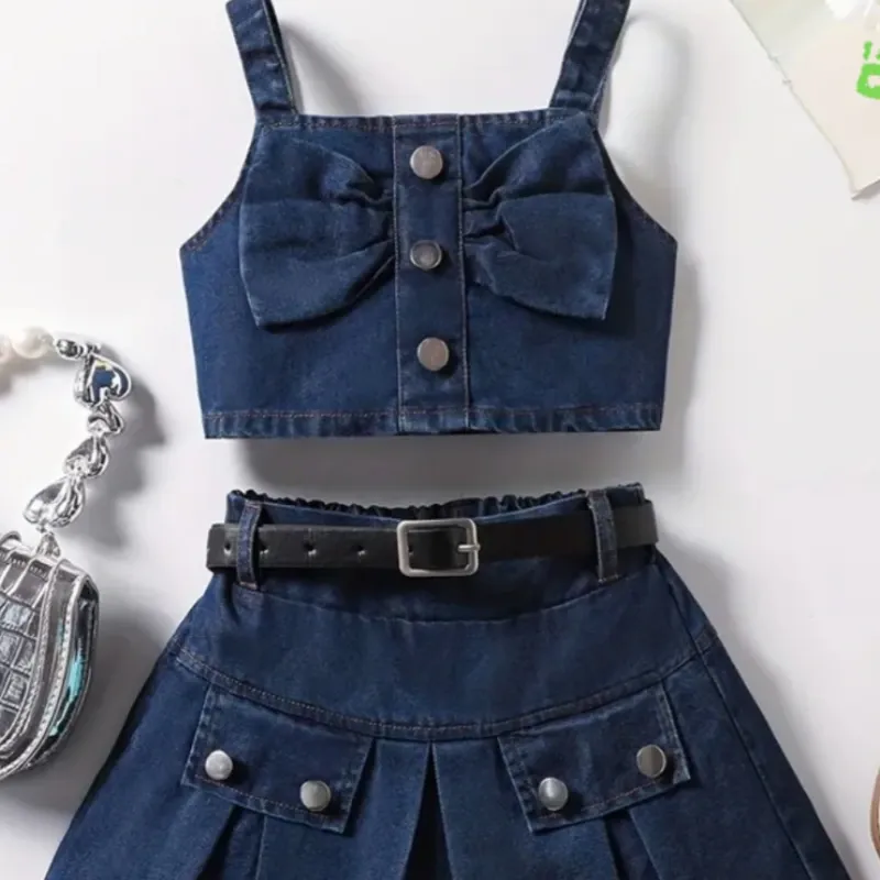 Blusa con Lazo y Falda Plisada con Cinturon