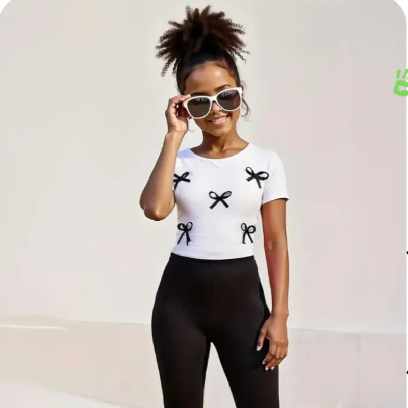 Camiseta corta con Lazos y Pantalones acampanados ajustados de talle alto