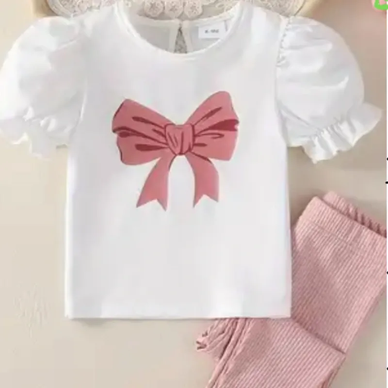 Camiseta de Manga Abullanada con pantalon de punto con encaje