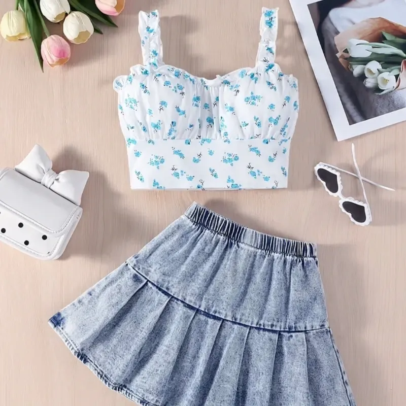 Camisola Floral con Falda de Denim