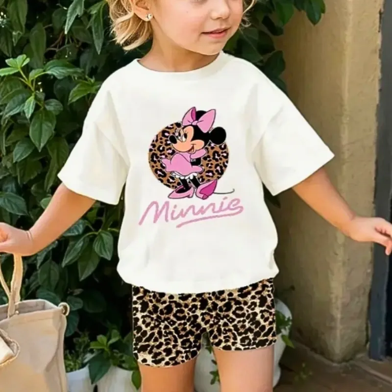 Conjunto con Estampado de Leopardo y Camiseta de cuello Redondo