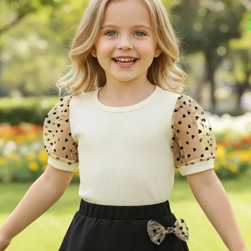 Top con Mangas de Malla y Lunares y Falda con Lazo
