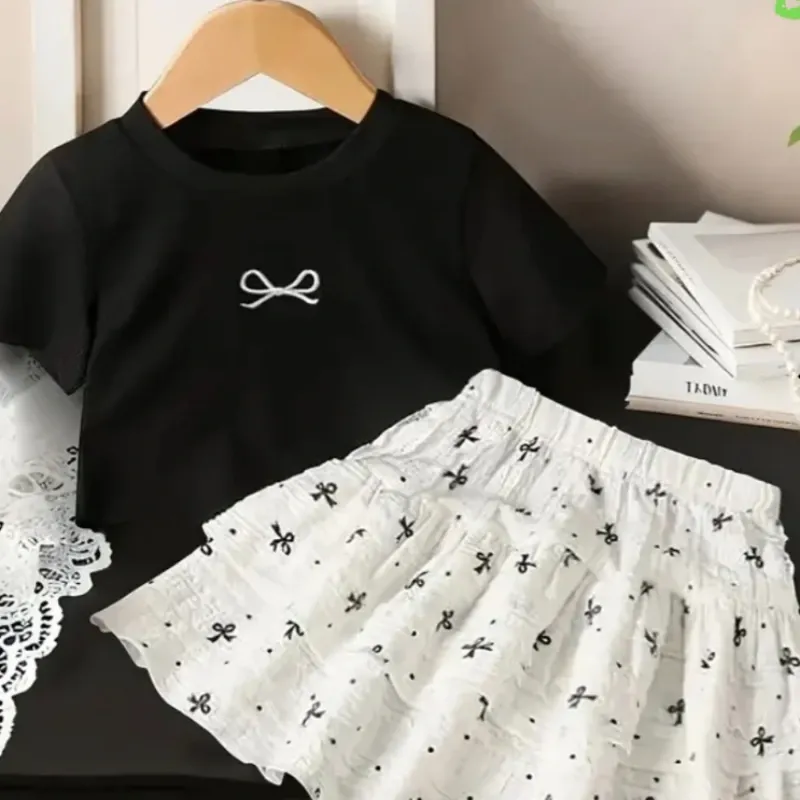 Top de Manga Corta y Falda con ribete de Encaje